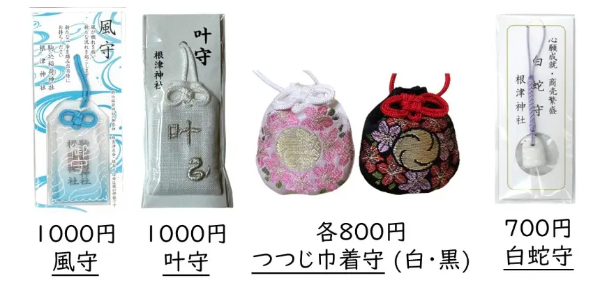 根津神社では、そのご利益を身近に感じられるよう、様々なお守りや御札(授与品)が用意されています。特に人気が高いのは、やはり前述の白蛇伝説にちなんだものです。